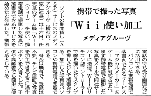 4月17日の日経産業新聞2面に任天堂「Wii」を使用して加工ができる「TV-WEB版マジカルメーカー」の紹介記事が掲載されました。